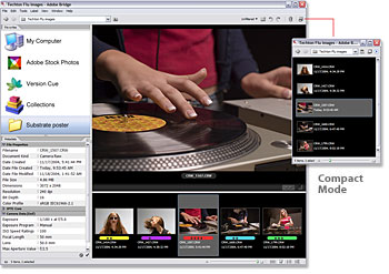 Poenostavite rokovanje z datotekami s tehnologijo Adobe Bridge, novo generacijo brskalnika datotek, kjer lahko procesirate več slik v RAW formatu hkrati, spremenite velikosti, razmerja, prilepite zaznamke, na hitro komentirate slike v predogledu, iščete osnovne podatke slik, in več.